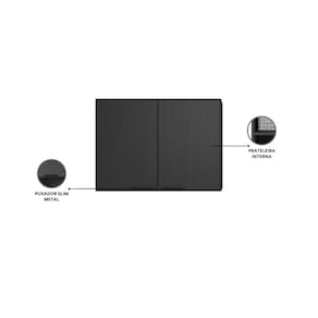Puxadores Slims Os puxadores slim em metal preto complementam o visual moderno do móvel.