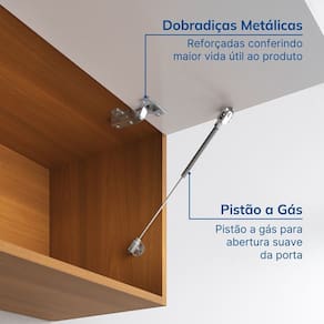 Informações Complementares: Porta de bater almofadada/moldurada em MDF, dobradiças de 35mm, pistão a gás, puxadores em alumínio.