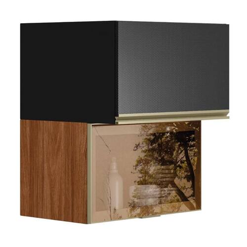 Armário Aéreo Proença 60cm Basculante 1 Porta Mdf E 1 Porta Vidro Reflecta Nogueira Touch/carbono Prime Tx Armário Aéreo Proença 60cm Basculante 1 Porta MDF e 1 Porta Vidro Reflecta - Demartêz O Armário Aéreo Proença 60cm combina elegância e funcionalidade, trazendo um design moderno com 1 porta basculante em MDF e 1 porta basculante com vidro reflecta. Produzido em MDF com pintura UV, possui pistão a gás, dobradiças com amortecimento, puxadores metálicos e amplo espaço interno para organização prática e sofisticada. ESPECIFICAÇÕES: - Estrutura em MDF - Pintura UV - 1 Porta basculante em MDF - 1 Porta basculante com vidro reflecta - Pistão a gás - Dobradiças com amortecimento - Puxadores metálicos - Amplo espaço interno