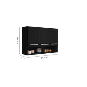 Armario Aereo Suspenso 3 Portas Preto Bolivia Brienza Movelaria