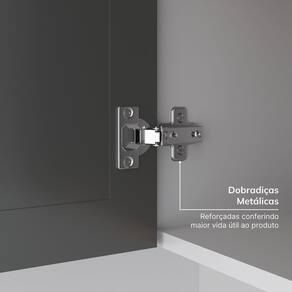 Informações Complementares: Portas de bater almofadadas/molduradas em MDF, dobradiças de 35mm, prateleira interna, puxadores em alumínio.