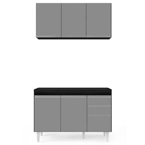 Por ser um cômodo onde praticidade e funcionalidade são conceitos que devem andar juntos, a cozinha muitas vezes é onde mais ficamos em dúvida sobre os complementos. Mas que tal investir em um kit com o essencial? Sim, a começar pelo Armário Virgínia que além das 3 portas com puxador em perfil metálico contém amplo espaço interno, já o balcão para pia Michigan Preto/Cinza é uma ótima alternativa por conter elementos indispensáveis nessa hora, que são as 3 portas com puxador em perfil metálico contendo amplo espaço interno e 2 gavetas para seus talheres! Tudo em MDP com acabamento em pintura BP e pés em PVC para sustentação do móvel!!