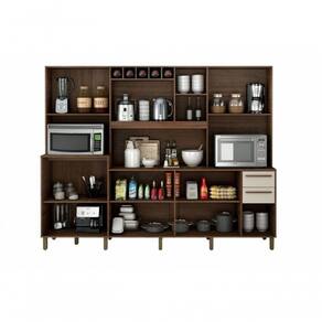 Armario Agata 13 Portas 2 Gavetas 5 Nichos Valdemoveis Cinamomo/grafite Dimensões: Largura: 2530 mm Altura: 2000 mm Prof.: 450 mm Peso: 122,500 kg Cubagem: 0,250 m3 Volumes: 3 caixas Espaço do produto: Tampo central 1795x490 mm (LxP) Nicho lateral 700x450x570 mm (LxPxA) Nicho micro-ondas 700x450x430 (LxPxA)