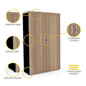 Seja na empresa ou no seu home-office, um ambiente executivo com sobriedade e design contemporâneo é possível e não precisa custar muito. Nossa sugestão: este armário alto em madeira no tom natural, com laterais na cor preta e duas portas inteiriças sem estantes abertas, para que você não se preocupe em procurar peças de decoração ou com uma manutenção diária de limpeza. No interior deste armário cabe todo o material que você precisa para o seu trabalho: documentos, livros, acessórios, utensílios de papelaria, papéis e materiais de escritório em geral. Com as portas fechadas, ele não mostra a bagunça do dia a dia e mantém seu espaço profissional sempre impecável. Deixe sua vida em ordem e seu ambiente mais bonito com esse armário da linha PE40 da Pandin, conhecida por suas peças de design clássico e sofisticado, que unem beleza, funcionalidade e estilo ao melhor custo-benefício do mercado. Nesta linha, você também vai encontrar uma diversidade de arquivos, estantes, gaveteiros e mesas que, combinados a este armário de madeira, podem compor um escritório sóbrio e de bom gosto, sob medida para suas necessidades.