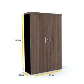Seja na empresa ou no seu home-office, um ambiente executivo com sobriedade e design contemporâneo é possível e não precisa custar muito. Nossa sugestão: este armário alto em madeira escura, com laterais na cor preta e duas portas inteiriças sem estantes abertas, para que você não se preocupe em procurar peças de decoração ou com uma manutenção diária de limpeza. No interior deste armário cabe todo o material que você precisa para o seu trabalho: documentos, livros, acessórios, utensílios de papelaria, papéis e materiais de escritório em geral. Com as portas fechadas, ele não mostra a bagunça do dia a dia e mantém seu espaço profissional sempre impecável. Deixe sua vida em ordem e seu ambiente mais bonito com esse armário da linha PE40 da Pandin, conhecida por suas peças de design clássico e sofisticado, que unem beleza, funcionalidade e estilo ao melhor custo-benefício do mercado. Nesta linha, você também vai encontrar uma diversidade de arquivos, estantes, gaveteiros e mesas que, combinados a este armário de madeira, podem compor um escritório sóbrio e de bom gosto, sob medida para suas necessidades.