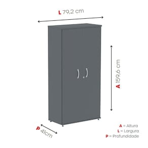 Seu design clean combina facilmente com diferentes mobílias, mantendo a harmonia da decoração. Ideal para o dia a dia de trabalho, é perfeito para deixar seu ambiente organizado, funcional e elegante. Acabamento da Porta: BP Acabamento da Prateleira: BP Ambiente Principal: Escritório Armário Suspenso: Não Complexidade da Montagem: Média: pode ser montado por mais de uma pessoa e/ou necessite de maior conhecimento para montagem Cor: Grafite Cor do Produto: Grafite Cor Interna: Grafito Escala de Brilho: Semi-Fosco Escala de Brilho da Porta: Semi-Fosco Escala de Brilho da Prateleira: Semi-Fosco Formato do Armário: Retangular Itens Inclusos: 1 Armário Manual de Montagem e Instalação: https://product-hub-prd.madeiramadeira.com.br/970585/documents/cb27996c-1483-41ce-9775-1af62900e07a07361732542625970585140025.pdf Marca: Pandin Móveis Material da Porta: MDP Material da Prateleira: MDP Material dos Pés: Polipropileno Material Principal: MDP Necessita Montagem: Sim Orientação do Armário: Vertical Origem do Produto: Nacional Peso: 43,9906 kg Peso Máximo por Prateleira: 15 kg Possui Espelho: Não Possui Mesa Retrátil: Não Possui Pés: 04 Possui Portas: 02 Possui Prateleiras: 03 Quantidade de Armários: 1 Recomendações de Uso, Manutenção e Limpeza: Limpeza feita com um pano levemente umedecido e um pano seco. Sapatas Niveladoras: Sim Sistema de Montagem: Parafuso Suporta Até (kg): 30 kg Tamanho do Armário: Alto (Acima de 150cm) Tipo de Armário: Totalmente Fechado Tipo de Dobradiça/Corrediça da Porta: Alumínio Tipo de Puxador da Porta: Externo Marca: Não Informado