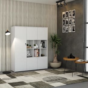 Sobre o ProdutoArmário Alto C/Nichos e 05 Portas 161,5x135x42cm WLAN135 Carvalho / BrancoDescrição do Produto:Armário Alto com Nichos WLAN135 WorkLab é uma peça de mobiliário que alia capacidade de armazenamento com um design elegante e moderno, ideal para escritórios que valorizam tanto a funcionalidade quanto a estética. Com nichos centrais abertos e cinco portas, este armário oferece uma solução de armazenamento diversificada, perfeita para exibir itens decorativos ou manter materiais de consulta rápida à mão. Suas portas possuem dobradiças com amortecedor que garantem um fechamento suave e silencioso, além dos puxadores em alumínio, elegantes e funcionais. O Armário WLAN135 WorkLab é mais que um simples móvel de armazenamento, é uma declaração de estilo que traz organização e sofisticação ao ambiente de trabalho.A linha WorkLab combina funcionalidade, design contemporâneo e durabilidade para criar um ambiente de trabalho eficiente e inspirador. Com uma ampla variedade de peças versáteis, a WorkLab oferece soluções completas para escritórios, home offices e espaços corporativos. Explore os principais componentes dessa linha e ache a escolha certa para quem busca qualidade, design e funcionalidade em móveis de escritório. Transforme seu espaço de trabalho com a elegância e praticidade da linha WorkLab.Itens Inclusos:1 Armário c/NichoDimensões dos Produtos:Armário Alto C/Nichos e 05 Portas 161,5x135x42cm WLAN135 Carvalho / Branco: 135 x 42 x 161,5 cmInformações Logísticas (Comp. X Prof. X Alt.):Vol.01: 163 x 51 x 7,7 cm Peso: 31,71 KgVol.02: 139 x 48 x 12,7 cm Peso: 40,194 KgPeso Total: 71,904 KgObservações:Não acompanha acessórios decorativos. Imagens meramente ilustrativas.Informações Técnicas / Características: Cor do Produto: Carvalho / Branco Cor do Predominante: Marrom Claro Marca: Compace Modelo: WLAN135 Linha: WorkLab Material: Mdp Acabamento: Perffect Acetinado Escala de Brilho: Fosco Fita de Borda: Pvc Possui Portas: 5 Tipo de Porta: Bater Tipo da Dobradiça: Metálica C/Amortecedor Possui Gavetas: Não Possui Chave: Sim Material do Puxador: Alumínio Possui Prateleiras: 5 Peso Máximo por Prateleira: 10kg Pés Niveladores: Sim Acabamento Estrutura: BP Formato: Retangular Possui Nicho: 6 Suporta Até (kg): 90kg Comprimento: 135cm Profundidade: 42cm Altura: 161,5cm Peso Líq.: 70,29Kg Recomendações de Uso, Manutenção e Limpeza: Para a limpeza, utilize flanela seca ou pano macio levemente umedecido em água. Utilize um pano seco em seguida. Evite contato com produtos químicos (solventes, thinner, acetona, etc) e não utilize nenhum tipo de esponja de aço. Necessita de Montagem: Sim / Acompanha Manual de Montagem Complexidade da Montagem: Alta: deve ser montado por um montador especializado. Garantia: 6 meses