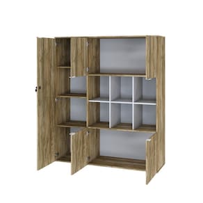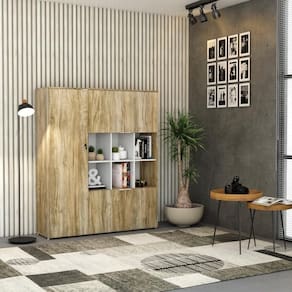 Armário Alto C/nichos E 05 Portas 161,5x135x42cm Wlan135 Carvalho / Branco Carvalho / Branco