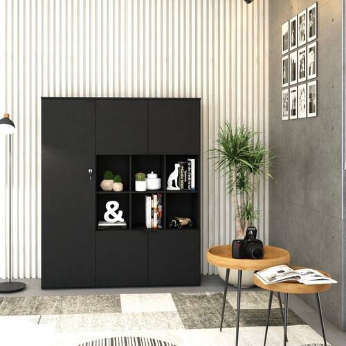 Armário Alto com Nichos WLAN135 WorkLab é uma peça de mobiliário que alia capacidade de armazenamento com um design elegante e moderno, ideal para escritórios que valorizam tanto a funcionalidade quanto a estética. Com nichos centrais abertos e cinco portas, este armário oferece uma solução de armazenamento diversificada, perfeita para exibir itens decorativos ou manter materiais de consulta rápida à mão. Suas portas possuem dobradiças com amortecedor que garantem um fechamento suave e silencioso, além dos puxadores em alumínio, elegantes e funcionais. O Armário WLAN135 WorkLab é mais que um simples móvel de armazenamento, é uma declaração de estilo que traz organização e sofisticação ao ambiente de trabalho. Acabamento da Porta: BP Acabamento da Prateleira: BP Ambiente Principal: Escritório Complexidade da Montagem: Alta: deve ser montado por um montador especializado Cor: Preto Cor do Produto: Preto Cor Interna: Preto Escala de Brilho: Fosco Escala de Brilho da Porta: Fosco Escala de Brilho da Prateleira: Fosco Itens Inclusos: 1 Armário c/Nicho Manual de Montagem e Instalação: https://cdn2.madeiramadeira.com.br/prd/compace-sala-de-jantar/2365024-1727080858-950117-109196.pdf Material da Porta: MDP Material da Prateleira: MDP Material do Puxador da Porta: Alumínio Material Principal: MDP Necessita Montagem: Sim Origem do Produto: Nacional Peso: 70,29 kg Peso Máximo por Prateleira: 10 kg Possui Espelho: Não Possui Nicho: Sim Possui Pés: Não Possui Portas: 05 Possui Prateleiras: 05 Recomendações de Uso, Manutenção e Limpeza: Para a limpeza, utilize flanela seca ou pano macio levemente umedecido em água. Utilize um pano seco em seguida. Evite contato com produtos químicos (solventes, thinner, acetona, etc) e não utilize nenhum tipo de esponja de aço. Sapatas Niveladoras: Sim Sistema de Montagem: Parafuso, Cavilha, Minifix, Dobradiça, Prego e sapata niveladora Suporta Até (kg): 90 kg Tipo de Dobradiça/Corrediça da Porta: Metálica Tipo de Puxador da Porta: Externo Marca: Metalig