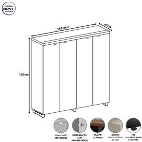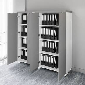 Altura: 160 cm Acabamento da Porta: BP Acabamento da Prateleira: BP Acabamento dos Pés: Pintura Ambiente Principal: Escritório Armário Suspenso: Não codigo_ean: 7900288244154 Complexidade da Montagem: Média: pode ser montado por mais de uma pessoa e/ou necessite de maior conhecimento para montagem Cor: Cinza Sagrado com Branco Cor do Produto: Cinza Sagrado com Branco Cor Flex: Não Cor Interna: Branco Escala de Brilho: Fosco Escala de Brilho da Porta: Fosco Escala de Brilho da Prateleira: Fosco Espessura do Tampo: 40 mm Formato do Armário: Retangular Itens Inclusos: 1 Armário Alto, Kit Ferragens e Manual da Montagem. Linha ou Coleção: Coleção Corporate F5 Office Manual de Montagem e Instalação: https://product-hub-prd.madeiramadeira.com.br/986158463/documents/029a65a7-1e72-4b31-9385-87354450af9e3249235659517592388944699.pdf Marca: F5 Office Material da Porta: MDP Material da Prateleira: MDP Material dos Pés: Metal Material Principal: MDP Montagem Flex: Não, o produto só pode ser montado conforme a imagem. Necessita Montagem: Sim Orientação do Armário: Vertical Origem do Produto: Nacional Pés Reguláveis: Sim Peso: 106 kg Peso Máximo por Prateleira: 10 kg Possui Espelho: Não Possui Mesa Retrátil: Não Possui Pés: 03 Possui Portas: 04 Possui Prateleiras: 06 Quantidade de Armários: 1 Recomendações de Uso, Manutenção e Limpeza: Para uma limpeza mais efetiva, utilizar apenas pano macio e sabão neutro. Não utilizar produtos abrasivos. Sapatas Niveladoras: Sim Sistema de Montagem: Parafusos e buchas metálicas. Suporta Até (kg): 80 kg Tamanho do Armário: Alto (Acima de 150cm) Tipo de Armário: Totalmente Fechado Tipo de Dobradiça/Corrediça da Porta: Metálica Tipo de Puxador da Porta: Externo Marca: Não Informado
