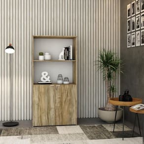 Armário Alto Estante C/02 Portas 161,5x80x42cm Wlae80 Carvalho / Branco Carvalho / Branco