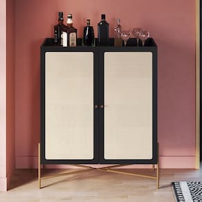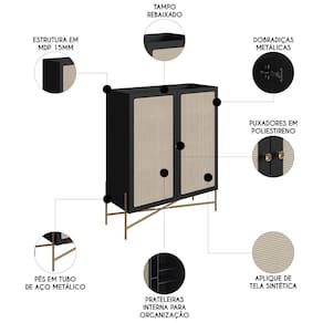 O Armário Aparador Bar 2 Portas Pé Metal Arlo A10 Nero/Dourado, da Mpozenato, destaca-se pela robustez e pelo design que une funcionalidade e estética.