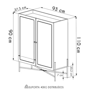 Dimensões do Produto Largura: 93 cm. Altura: 110 cm. Profundidade: 37,5 cm. Peso: 32,8 Kg.