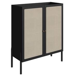 O Armário Aparador Bar 2 Portas Pés Madeira Arlo A10 Nero/Preto, da Mpozenato, destaca-se pela robustez e pelo design que une funcionalidade e estética.