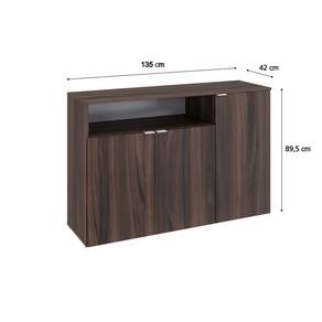 O Armário Aparador com 03 Portas e Nicho WorkLab é uma peça de mobiliário que combina beleza e funcionalidade, perfeita para complementar qualquer escritório moderno. Com linhas limpas, este aparador oferece amplo espaço interno, enquanto o nicho superior é ideal para guardar itens decorativos ou de fácil acesso. Suas portas possuem dobradiças com amortecedor que garantem um fechamento suave e silencioso, além dos puxadores em alumínio, discretos e funcionais. O Armário Aparador WLAP135 WorkLab é mais do que um simples móvel, é uma peça que valoriza o ambiente de trabalho com sua presença marcante e prática. Acabamento da Porta: BP Acetinado Acabamento da Prateleira: BP Acetinado Ambiente Principal: Escritório Complexidade da Montagem: Alta: deve ser montado por um montador especializado Cor: Nogal /Branco Cor do Produto: Nogal /Branco Cor Interna: Nogal Escala de Brilho: Fosco Escala de Brilho da Porta: Fosco Escala de Brilho da Prateleira: Fosco Itens Inclusos: 1 Armário Aparador Manual de Montagem e Instalação: https://cdn2.madeiramadeira.com.br/atributo/compace-dalex/2357596-1708-17267601591654.pdf Material da Porta: MDP Material da Prateleira: MDP Material do Puxador da Porta: Alumínio Material Principal: MDP Necessita Montagem: Sim Origem do Produto: Nacional Peso: 42,125 kg Peso Máximo por Prateleira: 10 kg Possui Espelho: Não Possui Nicho: Sim Possui Pés: Não Possui Portas: 01 Possui Prateleiras: 03 Recomendações de Uso, Manutenção e Limpeza: Para a limpeza, utilize flanela seca ou pano macio levemente umedecido em água. Utilize um pano seco em seguida. Evite contato com produtos químicos (solventes, thinner, acetona, etc) e não utilize nenhum tipo de esponja de aço. Sapatas Niveladoras: Sim Sistema de Montagem: Parafuso, Cavilha, Minifix, Dobradiça, Prego e sapata niveladora Suporta Até (kg): 70 kg Tipo de Dobradiça/Corrediça da Porta: Metálica Tipo de Puxador da Porta: Externo