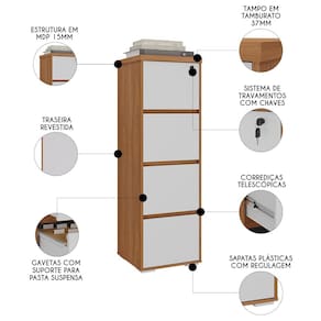 Saiba mais sobre o Armário Arquivo com Chave 4 Gavetas Corp A06 Freijó/Branco, da Mpozenato, e descubra a solução ideal para quem deseja uma organização impecável, seja no escritório ou home office.