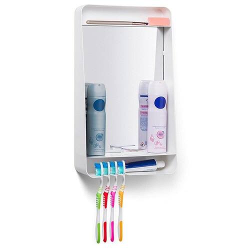 Especificações Gerais do Produto: Espelho com compartimentos para banheiro Plástico (PS de alto impacto) Alta durabilidade e resistência Segurança de transporte Espelho ecológico