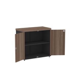 Eucalipto,MDPArmário Baixo 2 Portas Pivotantes 75cm Preto/Walnut -