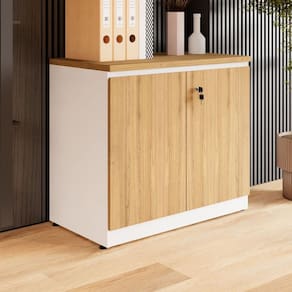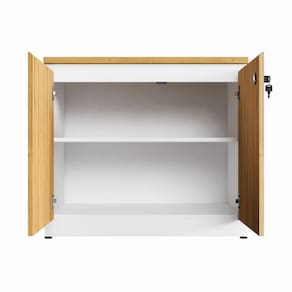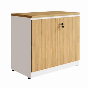 Armário Baixo F5 Office com 2 portas, uma com chave, ideal para organizar e guardar documentos com segurança. Compacto, moderno e combina com a linha F5.