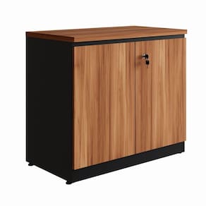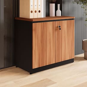 Armário Baixo F5 Office com 2 portas, uma com chave, ideal para organizar e guardar documentos com segurança. Compacto, moderno e combina com a linha F5.