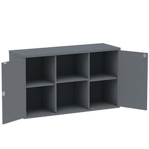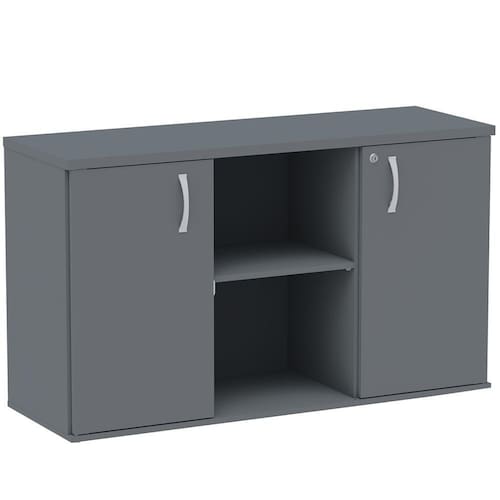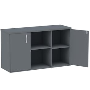 Armário Baixo Credenza PE25 Pandin 121,50 cm (largura) em MDP Cor Grafito com Dois Nichos e Duas Portas - Cinza