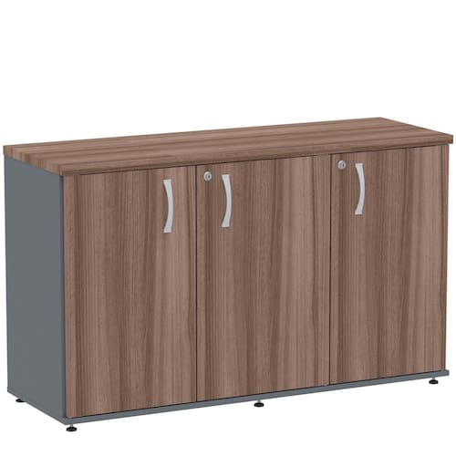 Armário Baixo Credenza PE25 Pandin 121,50 cm (largura) em MDP Cor Walnut e Grafito com Três Portas - Marrom