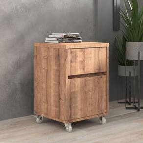 estilo industrial! Inclusive, conta com 1 gaveta de corrediças metálicas,1 porta convencional e rodízios para facilitar a locomoção. Me diz, esse