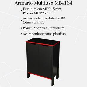 Armário Baixo Multiuso 2 Portas ME4164, é a opção perfeita para quem busca praticidade e funcionalidade, ideal para organizar e armazenar seus pertences. Estrutura em MDP de 15mm, pés em MDP DE 25mm, proporcionando maior durabilidade e resistência a peça, contando com acabamento revestido em BP (Semi - Brilho). Composto por 2 portas com dobradiças metálicas, 1 prateleira interna com amplo espaço, suportando 10kg o tampo e 5kg a prateleira, acompanha sapatas plásticas. Perfeita para deixar seu ambiente produtivo, proporcionando uma ambientação elegante e com acabamentos sofisticados. Este móvel chegará na sua casa separado em 1 volume.