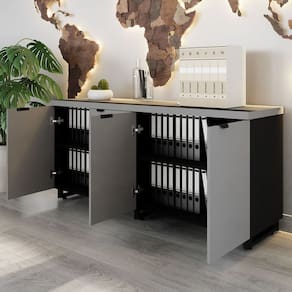 O Armário Baixo Duplo F5 Office 1,58m é ideal para organizar documentos e objetos com praticidade. Conta com 4 portas e puxadores metálicos, unindo funcionalidade e durabilidade. Pode ser utilizado em escritórios, salas de estudo ou ambientes residenciais, combinando com móveis modernos.