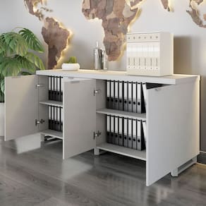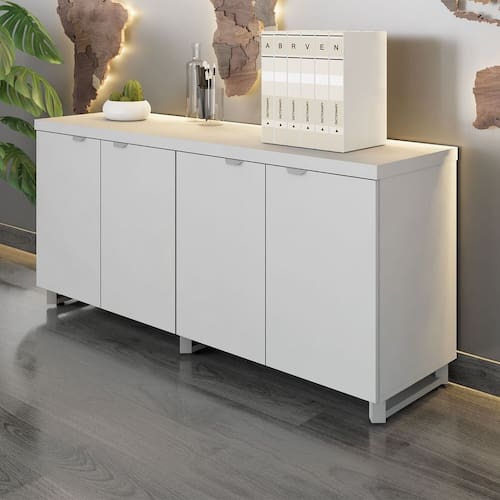 O Armário Baixo Duplo F5 Office 1,58m é ideal para organizar documentos e objetos com praticidade. Conta com 4 portas e puxadores metálicos, unindo funcionalidade e durabilidade. Pode ser utilizado em escritórios, salas de estudo ou ambientes residenciais, combinando com móveis modernos.