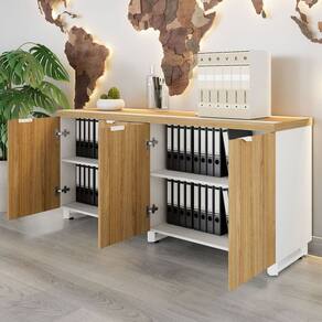 O Armário Baixo Duplo F5 Office 1,58m é ideal para organizar documentos e objetos com praticidade. Conta com 4 portas e puxadores metálicos, unindo funcionalidade e durabilidade. Pode ser utilizado em escritórios, salas de estudo ou ambientes residenciais, combinando com móveis modernos.