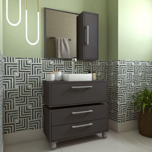 O balcão baixo para banheiro Alice, da Faema, otimiza seu espaço auxiliando muito bem no armazenamento de seus itens e garantindo praticidade no seu dia-dia. É uma solução prática para você aproveitar aquele espaço restrito, complementando assim o seu ambiente. Possui 2 gavetas onde você pode organizar os seu pertences.. Possui rodízios que facilitam a movimentação do móvel na hora da limpeza. Não possui cuba. Acabamento da Gaveta: Finish Foil Acabamento dos Pés: Liso Acompanha Cuba: Não Acompanha Manual de Instalação: Sim Acompanha Parafusos Para Fixação Na Parede: Não Altura dos Pés: 10 Ambiente Principal: Banheiro Complexidade da Montagem: Baixa: pode ser montado por uma pessoa sozinha Cor: Grafite Cor do Produto: Grafite Cor Interna: Grafite Escala de Brilho: Fosco Escala de Brilho da Gaveta: Fosco Furação para Cuba e Torneira: Não Gaveta com Chave: Não Itens Inclusos: 1 Balcão, Kit Ferragens e Manual de Montagem Linha ou Coleção: Banheiro Manual de Montagem e Instalação: https://product-hub-prd.madeiramadeira.com.br/873971/documents/f0d3d9f8-5598-4c3d-b328-7b509ae0627c987449500565manualbl201201.pdf Material da Gaveta: MDP Material do Puxador da Gaveta: ABS Material do Tampo: MDP Material dos Pés: ABS Material Principal: MDP Necessita Montagem: Sim Origem do Produto: Nacional Pés Reguláveis: Não Peso: 17.28 Peso Máximo por Gaveta: 10 Possui Pés: 04 Possui Portas: Não Possui Prateleiras: Não Possui Rodízio: Sim Possui Sifão: Não Possui Tampo: Sim Quantidade de Gavetas: 02 Recomendações de Uso, Manutenção e Limpeza: Para a limpeza do móvel utilizar pano levemente umedecido com água Resistente à Chuva: Não Rodízio com Trava: Sim Sapatas Niveladoras: Não Sistema de Montagem: Parafusos, cavilhas e minifix Suporta Até (kg): 20 Suporte para Toalheiro: Não Tipo de Corrediça da Gaveta: Metálica Simples Tipo de Puxador da Gaveta: Externo Ean: 7909903452998