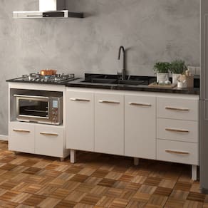 Sua cozinha merece móveis que combinem perfeitamente, não é? Mas isso não significa que você precise gastar muito! Com o Kit Balcão para Pia e Balcão para Cooktop 5 Bocas da Mobília Decor, você personaliza sua cozinha do seu jeito, com móveis de alta qualidade, e por um preço que cabe no seu bolso!