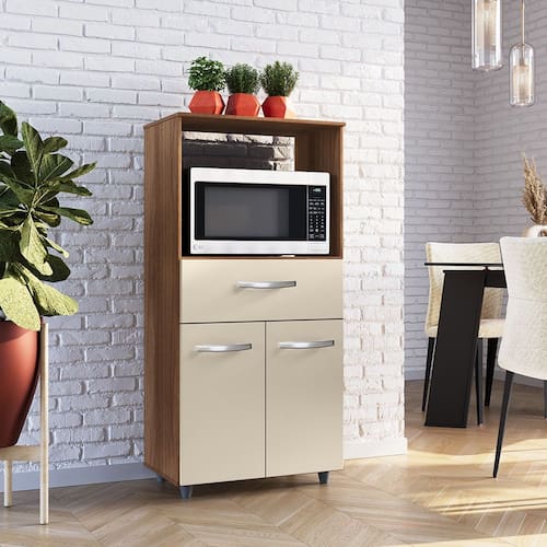 Armário Balcão Multiuso para Cozinha Micro-ondas e Forno Luna 02 Portas 01 Gaveta Savana Off White Moblis