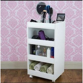 Armário Balcão Nicho Cozinha Carrinho Auxiliar com 4 Rodinhas Carrinho Auxiliar Luxo Branco Studio - Salões Atende bem como armário balcão de chão suporte para bebedouro-esmaltaria e outras funções Novo modelo de carrinho, mais moderno e elegante e mais duradouro do que os em plástico. Produto muito bom para locomoção, fácil e prático para uso, não vai te causar nenhum conflito. Cor: Branco Medidas:Altura: 75 centímetrosLargura: 40 centímetrosProfundidade: 30 centímetros Não acompanha objetos decorativos. Marca: Decor Moveis