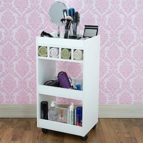 Armário Balcão Nicho Cozinha Carrinho Auxiliar com 4 Rodinhas Nicho Carrinho Auxiliar Luxo Branco Studio - Salões Atende bem como armário balcão de chão suporte para bebedouro-esmaltaria e outras funções Novo modelo de carrinho, mais moderno e elegante e mais duradouro do que os em plástico. Produto muito bom para locomoção, fácil e prático para uso, não vai te causar nenhum conflito. Cor: Branco Medidas:Altura: 75 centímetrosLargura: 40 centímetrosProfundidade: 30 centímetros Não acompanha objetos decorativos. Marca: Decor Moveis
