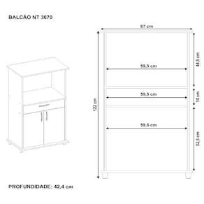 O Armário Balcão Notável vai manter sua cozinha organizada sem perder o estilo! Tem 2 portas para guardar seus utensílios de cozinha, espaço para até 02 fornos, possui 1 gaveta com corrediças metálicas, fazendo com que você tenha uma melhor organização em sua cozinha. Possui pezinhos para facilidade de limpeza! Ótima qualidade, e cabamento em pintura UV, que garante maior resistência e durabilidade ao produto. / MODELO: Armário Balcão Notavel / MARCA: Notavel / MEDIDAS: [ A ] = 122 cm - [ L ] = 67 cm - [ P ] = 42,5 cm / COR: Branco / MATERIAL: MDP / TIPO DE PINTURA: U.V / ACABAMENTO: Brilho / PORTAS: 2 / GAVETAS: 1 / CORREDIÇA: Metálica / TIPO DE PORTA: Articulada / PUXADOR: ABS metalizado / PÉS: 4 / MATERIAL DOS PÉS: Plástico / PESO: 28kg / INSTRUÇÕES E CUIDADOS: Para maior durabilidade, recomenda-se que a limpeza dos móveis seja feita com pano limpo e levemente umedecido em água e sabão neutro. Em seguida, deverá ser passado um pano limpo e seco. / GARANTIA: 90 Dias / Montagem não inclusa. Entregamos até a porta de entrada da casa do cliente ou até a portaria do condomínio.