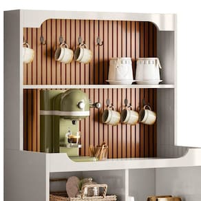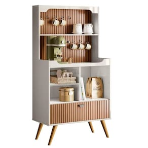 Armário Bancada Cantinho do Café Off White Perolizado/Tauari Ripado 1 Porta Basculante com Pés de Madeira - Lukaliam