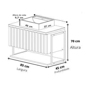 KIT Gabinete Suspenso para Banheiro com 1 Porta, Prateleiras e EspelhoModelo Gabinete: HavaíModelo Espelheira: OriCor: TitaniumCARACTERÍSTICAS:- Gabinete suspenso para Banheiro com Cuba e Espelheira desenvolvido em MDF- Acabamento em pintura BP.- Cuba em mármore sintético.- Amplo espaço interno- Porta com pistão à gás- Puxadores de alumínio.- Espelheira com estrutura em metalon, design moderno e prateleira em MDF.MEDIDAS ARMÁRIO:- Altura: 70cm- Largura: 84,3cm- Profundidade: 45cm- Peso: 27,5 kgMEDIDAS ESPELHEIRA:- Altura: 78 cm- Largura: 44 cm- Profundidade: 13 cm- Peso: 7.5 kgFICHA TÉCNICA ARMÁRIO:- Acabamento: BP- Acabamento da Porta: BP- Acabamento da Prateleira: BP- Cor: Titanium (cinza escuro)- Cor Interna: Titanium (cinza escuro)- Escala de Brilho: Fosco- Material da Porta: MDF- Material da Prateleira: MDF- Material do Puxador da Porta: Alumínio- Material Principal: MDF- Necessita Montagem: Sim- Origem do Produto: Nacional- Peso Máximo por Prateleira: 5- Possui Espelho: Não- Possui Gavetas: Não- Possui Pés: Suspenso- Possui Portas: 01- Possui Prateleiras: 01- Sistema de Montagem: Parafusos e Cavilhas- Suporta Até (kg): 14- Tipo de Dobradiça/Corrediça da Porta: Metálica- Tipo de Porta: Basculante- Tipo de Puxador da Porta: ExternoFICHA TÉCNICA ESPELHEIRA:- Cor: Titanium (Cinza Escuro)- Acabamento: BP- Garantia (meses): 3- Tipo de pintura: Fosco- Quantidade de Prateleiras: 1ITENS INCLUSOS NA EMBALAGEM:- 1 Armário- 1 Espelheira- Kit Ferragens- Manual de MontagemCOMPLEXIDADE DA MONTAGEM:- Grau: Médio (pode ser montado por uma ou mais pessoas)OUTRAS INFORMAÇÕES- Montagem não inclusa.- Na limpeza não utilizar produtos químicos e abrasivos, usar apenas um pano umedecido, para garantir a maior durabilidade do móvel.- Os objetos que ambientam as fotos não acompanham o produto.- Antes de comprar o seu produto verifique as medidas, o local onde pretende instalar e se é necessário contratar o serviço de um profissional qualificado. Ean: 7898942621062