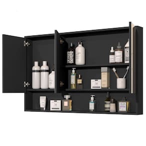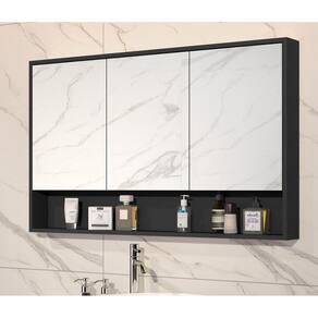 Armário Banheiro 90cm 3 Portas Com Espelho Hefesto Preto Descrição