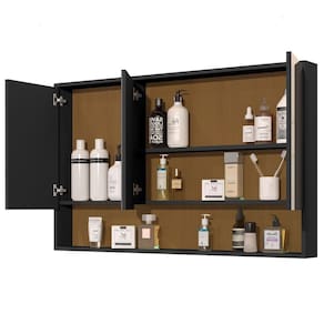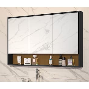 Armário Banheiro 90cm 3 Portas Espelho Hefesto Preto Nature Descrição