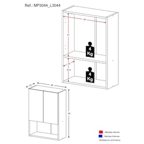 Altura: 68cm | Largura: 48cm | Profundidade: 22cm