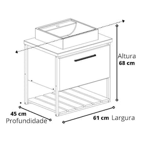 KIT Gabinete Suspenso para Banheiro com 1 Porta, Prateleiras e EspelhoModelo Gabinete: CaribeModelo Espeheira: OriCor: TitaniumCARACTERÍSTICAS:- Gabinete suspenso para Banheiro com Cuba e Espelheira desenvolvido em MDF- Acabamento em pintura BP.- Cuba em mármore sintético.- Amplo espaço interno- Porta com pistão à gás- Puxadores de alumínio.- Espelheira com estrutura em metalon, design moderno e prateleira em MDF.MEDIDAS ARMÁRIO:- Altura: 68 cm- Largura: 60 cm- Profundidade: 45 cm- Peso: 23,4 kgMEDIDAS ESPELHEIRA:- Altura: 78 cm- Largura: 44 cm- Profundidade: 13 cm- Peso: 7.5 kgFICHA TÉCNICA ARMÁRIO:- Acabamento: BP- Acabamento da Porta: BP- Acabamento da Prateleira: BP- Ambiente Principal: Banheiro- Cor: Titanium (cinza escuro)- Cor Interna: Titanium (cinza escuro)- Escala de Brilho: Fosco- Material da Porta: MDF- Material da Prateleira: MDF- Material do Puxador da Porta: Alumínio- Material Principal: MDF- Necessita Montagem: Sim- Origem do Produto: Nacional- Peso Máximo por Prateleira: 5 kg- Possui Espelho: Não- Possui Gavetas: Não- Possui Pés: Suspenso- Possui Portas: 01- Possui Prateleiras: 01- Sistema de Montagem: Parafusos e Cavilhas- Suporta Até (kg): 14 kg- Tipo de Dobradiça/Corrediça da Porta: Metálica- Tipo de Porta: Basculante- Tipo de Puxador da Porta: ExternoFICHA TÉCNICA ESPELHEIRA:- Cor: Titanium (cinza Escuro)- Acabamento: BP- Garantia (meses): 3- Tipo de pintura: Fosco- Quantidade de Prateleiras: 1ITENS INCLUSOS NA EMBALAGEM:- 1 Armário- 1 Espelheira- Kit Ferragens- Manual de MontagemCOMPLEXIDADE DA MONTAGEM:- Grau: Médio (pode ser montado por uma ou mais pessoas)OUTRAS INFORMAÇÕES- Montagem não inclusa.- Na limpeza não utilizar produtos químicos e abrasivos, usar apenas um pano umedecido, para garantir a maior durabilidade do móvel.- Os objetos que ambientam as fotos não acompanham o produto.- Antes de comprar o seu produto verifique as medidas, o local onde pretende instalar e se é necessário contratar o serviço de um profissional qualificado. Ean: 7898942621093