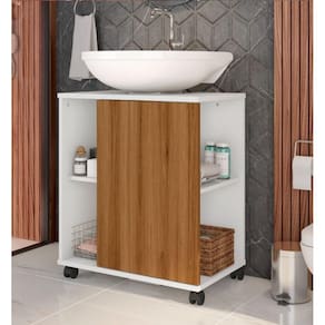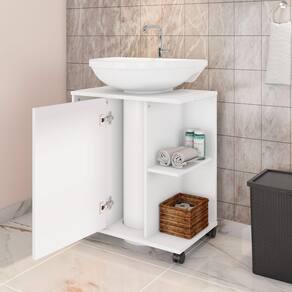 Gabinete Tokio tem seu formato que permite o posicionamento do gabinete perfeitamente na sua pia de coluna, fabricado com a largura de encaixe padronizado para qualquer pia de coluna. Quer ganhar espaço e organizar seu banheiro? Essa é sua função!