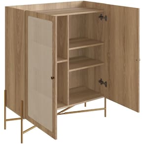 Com seu estilo que remete a um balcão aparador, ele une funcionalidade e elegância de forma irresistível. Os pés metálicos estilo industrial garantem durabilidade e um toque moderno, enquanto o detalhe em tela sintética traz um ar artesanal e suave. O tampo com rebaixo estilo bandeja não só é um convite a momentos de descontração, como também oferece praticidade para servir seus convidados com estilo. Ideal para armazenar suas bebidas favoritas e acessórios de bar ou até mesmo aproveitá-lo como cantinho do café, esse armário multiuso é a peça que faltava para transformar seu ambiente em um espaço acolhedor e cheio de personalidade.