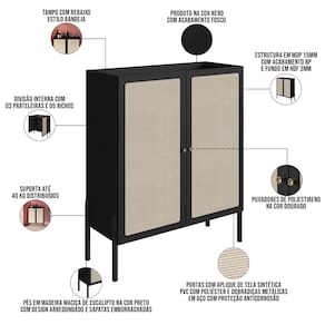 Com seu estilo que remete ao um balcão aparador, ele une funcionalidade e elegância de forma irresistível. Os pés em madeira maciça garantem durabilidade e um toque clássico, enquanto o detalhe em tela sintética traz um ar artesanal e suave. O tampo com rebaixo estilo bandeja não só é um convite a momentos de descontração, como também oferece praticidade para servir seus convidados com estilo. Ideal para armazenar suas bebidas favoritas e acessórios de bar ou até mesmo aproveitá-lo como cantinho do café, esse armário multiuso é a peça que faltava para transformar seu ambiente em um espaço acolhedor e cheio de personalidade.