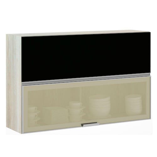 Armario Basculante Misto Luciane 120cm 1 Porta Fechada 1 Porta Alumínio com Vidro Reflecta Lis - Preto