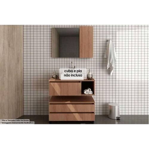 Gabinete de Banheiro Suspenso BN3601 s/ Cuba c/ 1 Porta 80cm Amêndoa - Tecno Mobili
