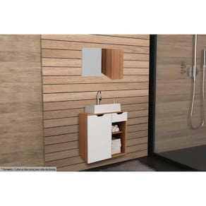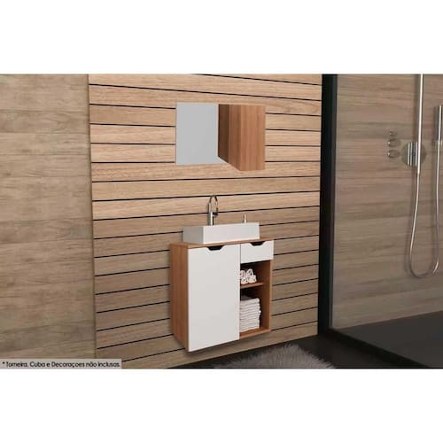 Conjunto de Banheiro Balcão Suspenso BN3605 s/ Cuba 60cm e Armário c/ Espelho BN3602 Amêndoa/Branco - Tecno Mobili Abaixo segue os produtos do KIT: Conjunto de Banheiro Balcão Suspenso BN3605 s/ Cuba 60cm e Armário c/ Espelho BN3602 Amêndoa/Branco - Tecno Mobili