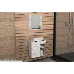 Gabinete de Banheiro Suspenso BN3605 s/ Cuba c/ 1 Porta e 1 Gaveta 60cm Mármore Branco - Tecno Mobili